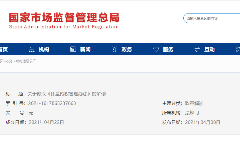 關(guān)于修改《計(jì)量授權(quán)管理辦法》的解讀