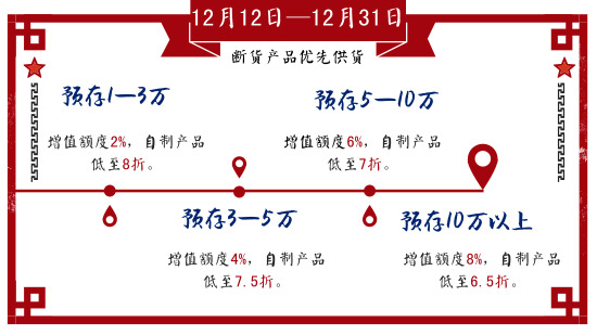 第三重:預(yù)存送溫暖:增值+優(yōu)惠折扣,比放在銀行都劃算,活動(dòng)時(shí)間:12月12日至12月31日。