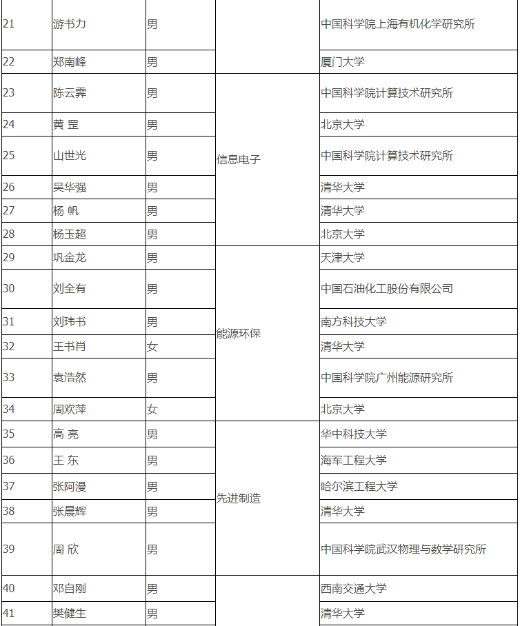 根據(jù)名單我們可發(fā)現(xiàn),此次獲獎(jiǎng)?wù)呓^大多數(shù)來自17所高校,如北京大學(xué)、清華大學(xué)、上海交通大學(xué)、浙江大學(xué)、中科大、南京大學(xué)、武漢大學(xué)、華中科技大學(xué)、東南大學(xué)、廈門大學(xué)、西南交通大學(xué)等;9名獲獎(jiǎng)?wù)邅碜韵嚓P(guān)研究所,還有一名來自中國(guó)石油化工股份有限公司。