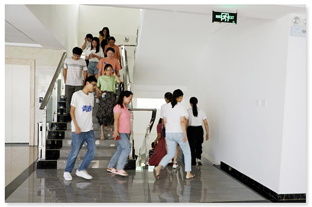 下午5點40分,火災(zāi)警鈴發(fā)出警報聲,全體員工快速、有序、安全進行疏散,向引導人員指定的方向撤離。所有人員疏散到樓下空地后,消防宣傳員李老師給大家普及火災(zāi)逃生知識,現(xiàn)場講解滅火器使用方法,指導員工親身體驗使用滅火工具。