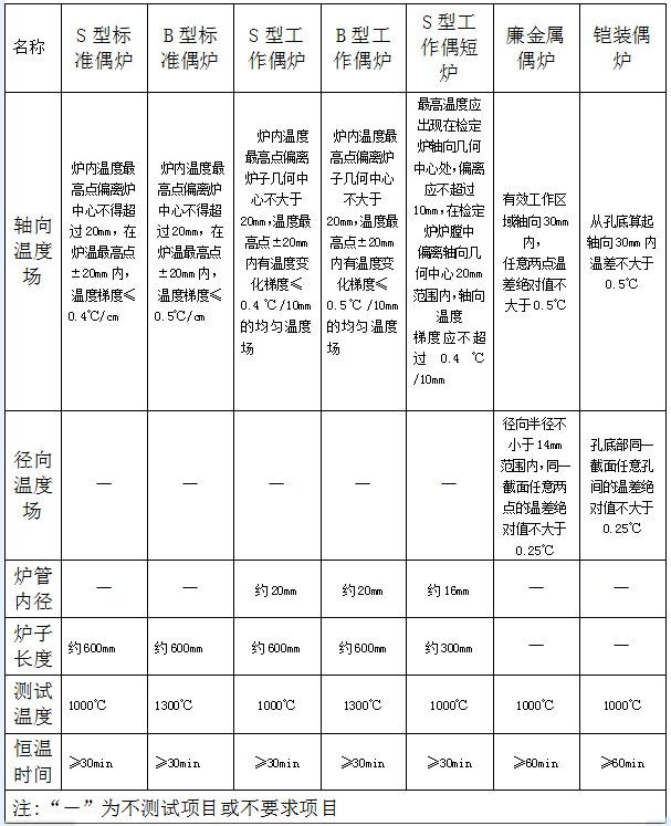 本測試規(guī)范適用于(300~1500)℃范圍內(nèi)熱電偶檢定爐溫度場的測試。對(duì)于立式、管式檢定爐及其他形式的檢定爐和校準(zhǔn)爐,可參照本規(guī)范執(zhí)行。