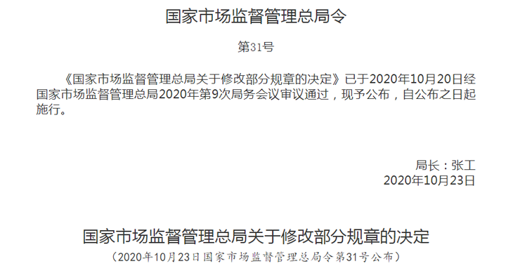 為了全面落實(shí)黨的十九屆三中全會審議通過的《中共中央關(guān)于深化黨和國家機(jī)構(gòu)改革的決定》《深化黨和國家機(jī)構(gòu)改革方案》和十三屆全國人大一次會議批準(zhǔn)的《國務(wù)院機(jī)構(gòu)改革方案》,確保行政機(jī)關(guān)依法履行職責(zé),進(jìn)一步推進(jìn)簡政放權(quán)、放管結(jié)合、優(yōu)化服務(wù)改革,市場監(jiān)管總局決定對30件部門規(guī)章的部分條款予以修改。