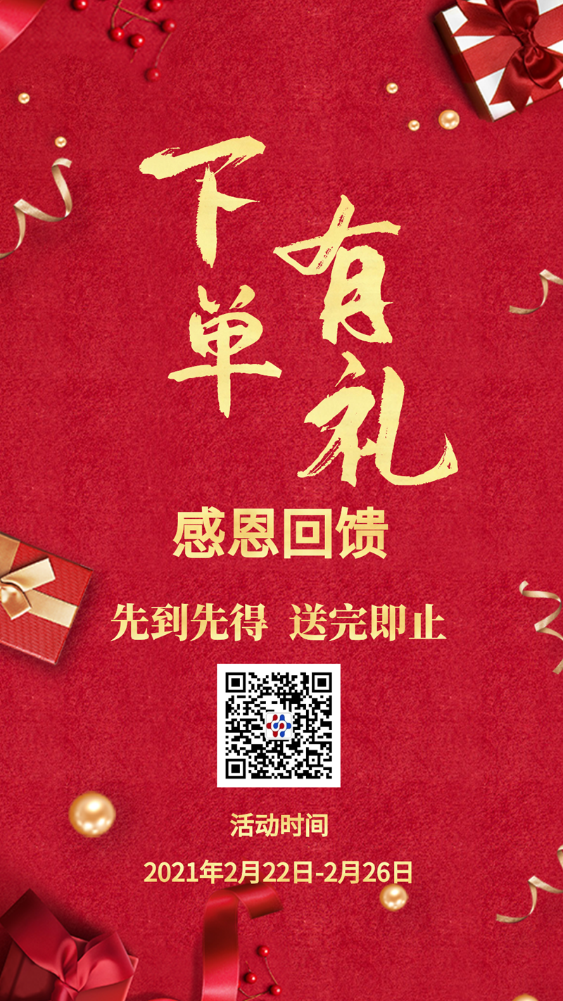 此次推出的“下單即送神秘禮品”活動(dòng),將于2021222日至226日進(jìn)行,歡迎廣大客戶積極參與!