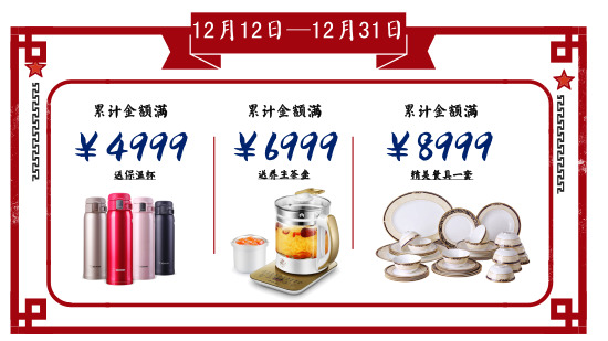 第二重:累計(jì)滿送好禮,多滿多送,活動(dòng)時(shí)間:12月12日至12月31日。