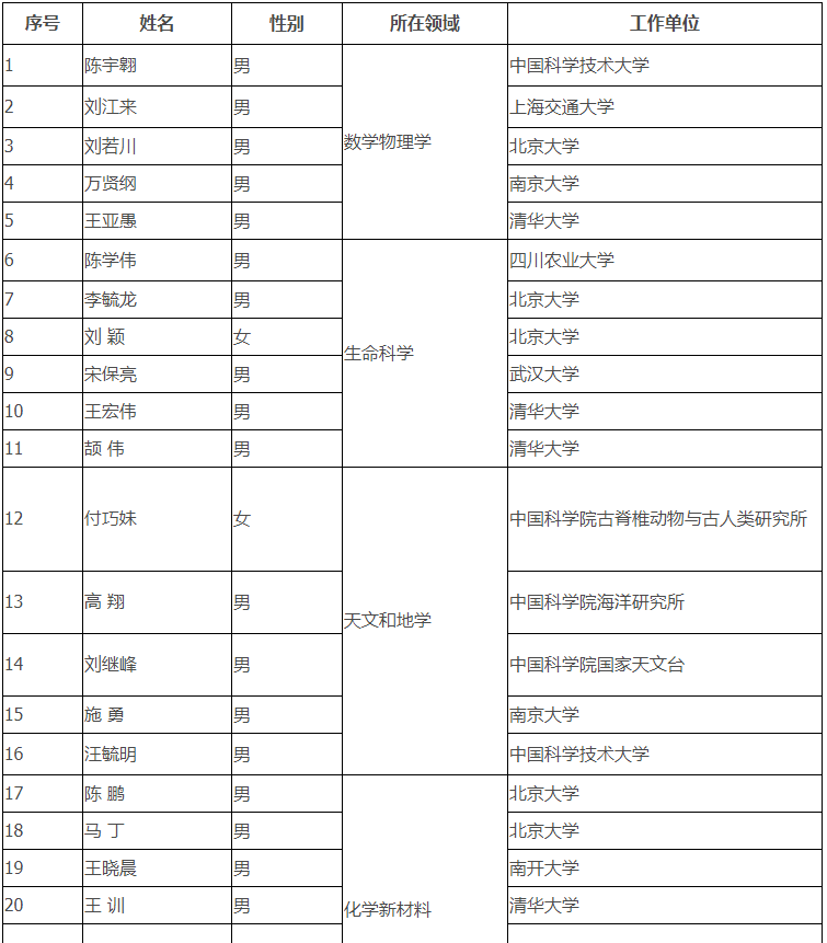 根據(jù)名單我們可發(fā)現(xiàn),此次獲獎(jiǎng)?wù)呓^大多數(shù)來自17所高校,如北京大學(xué)、清華大學(xué)、上海交通大學(xué)、浙江大學(xué)、中科大、南京大學(xué)、武漢大學(xué)、華中科技大學(xué)、東南大學(xué)、廈門大學(xué)、西南交通大學(xué)等;9名獲獎(jiǎng)?wù)邅碜韵嚓P(guān)研究所,還有一名來自中國(guó)石油化工股份有限公司。