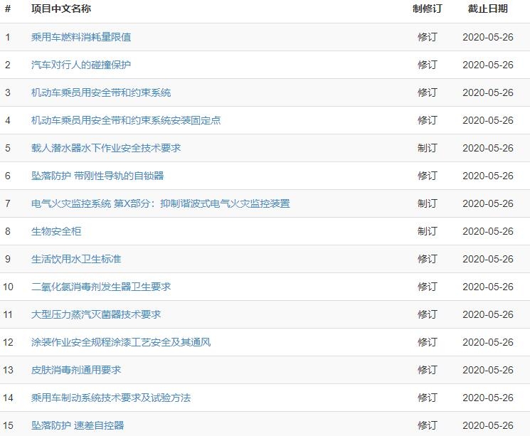 以下是部分擬立項標準公示信息: