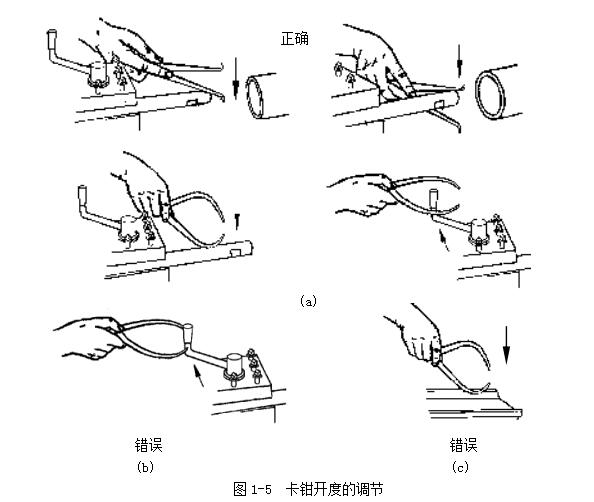 首先檢查鉗口的形狀,鉗口形狀對測量精確性影響很大,應注意經(jīng)常修整鉗口的形狀,圖1-4所示為卡鉗鉗口形狀好與壞的對比。